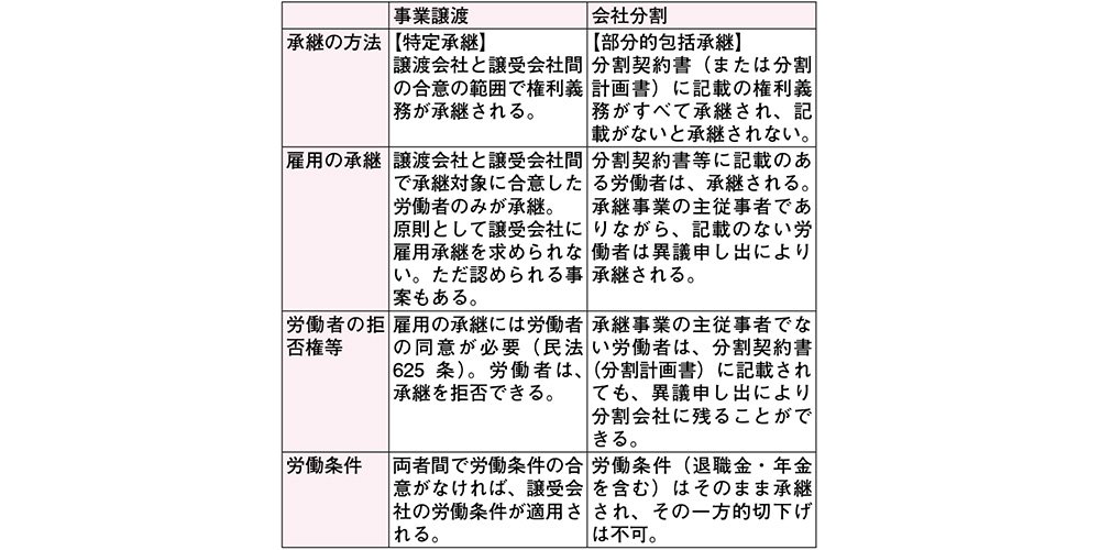 働く人の視点からすべきこと会社分割と事業譲渡で異なるルール