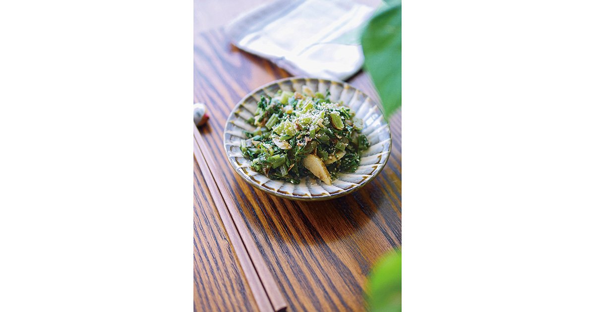 刻んで、鷹の爪とごま油で炒める。かつお節を加えて、しょうゆを回しかける。驚くほど簡単なのに、箸が止まらないおかずになる。ごはんの上で存在感を放ち、お弁当のすき間も埋めてくれる。おにぎりの具にもぴったり。それなのに、この葉は、ほとんど市場に出てこない。きっと多くが捨てられてしまっている。